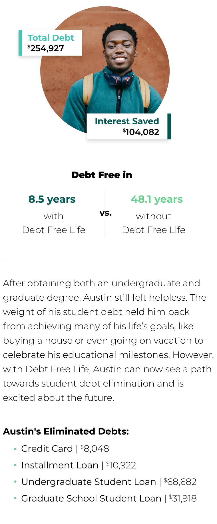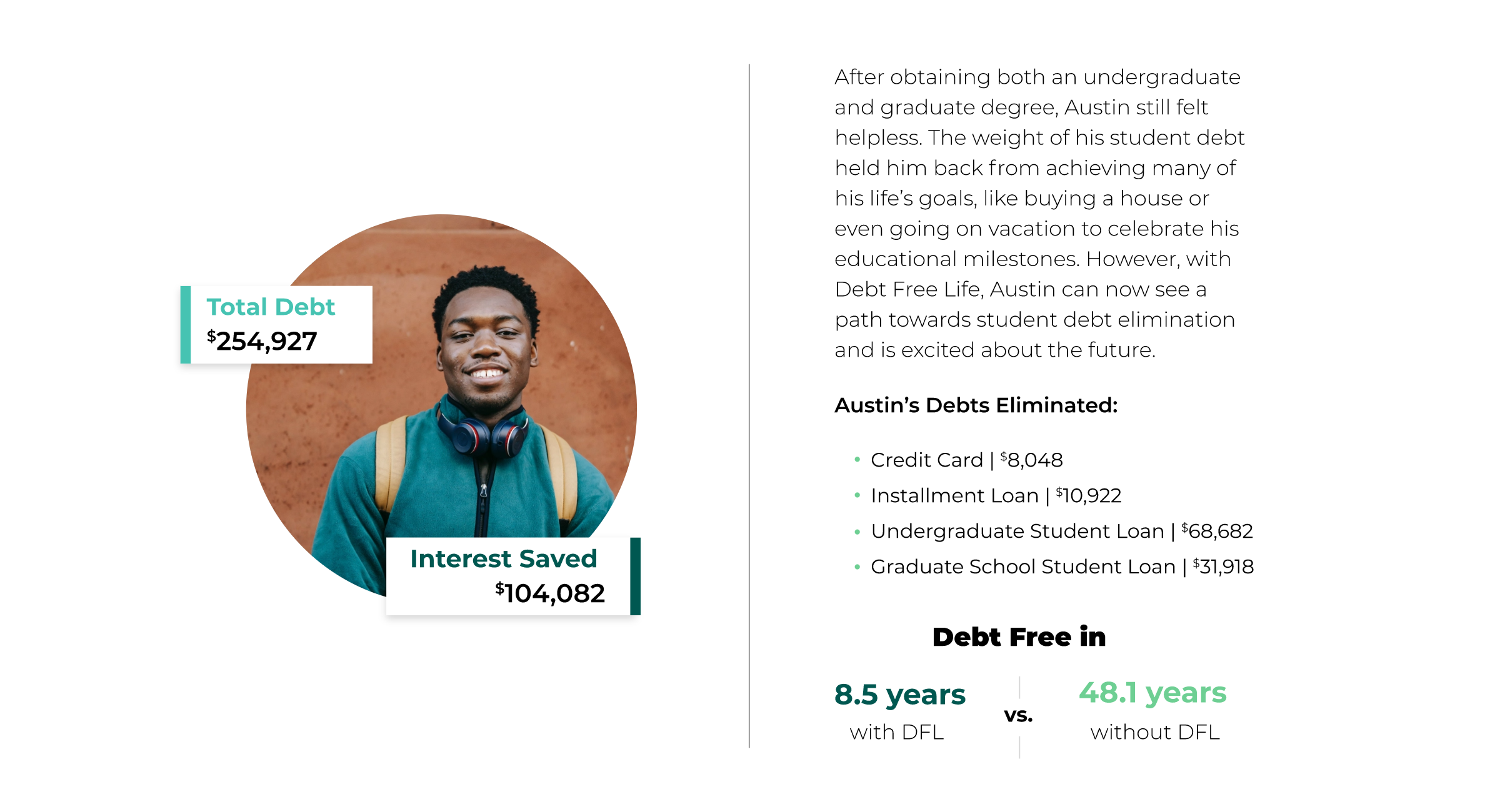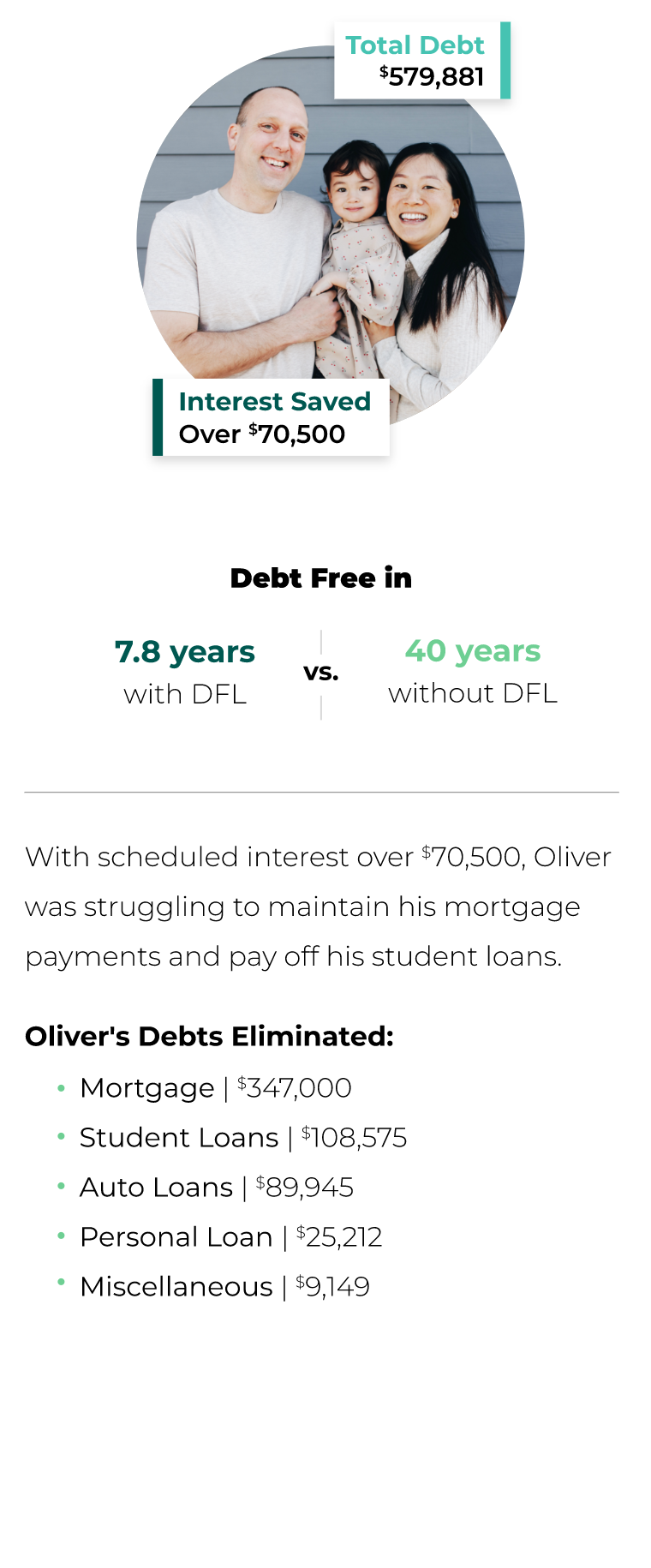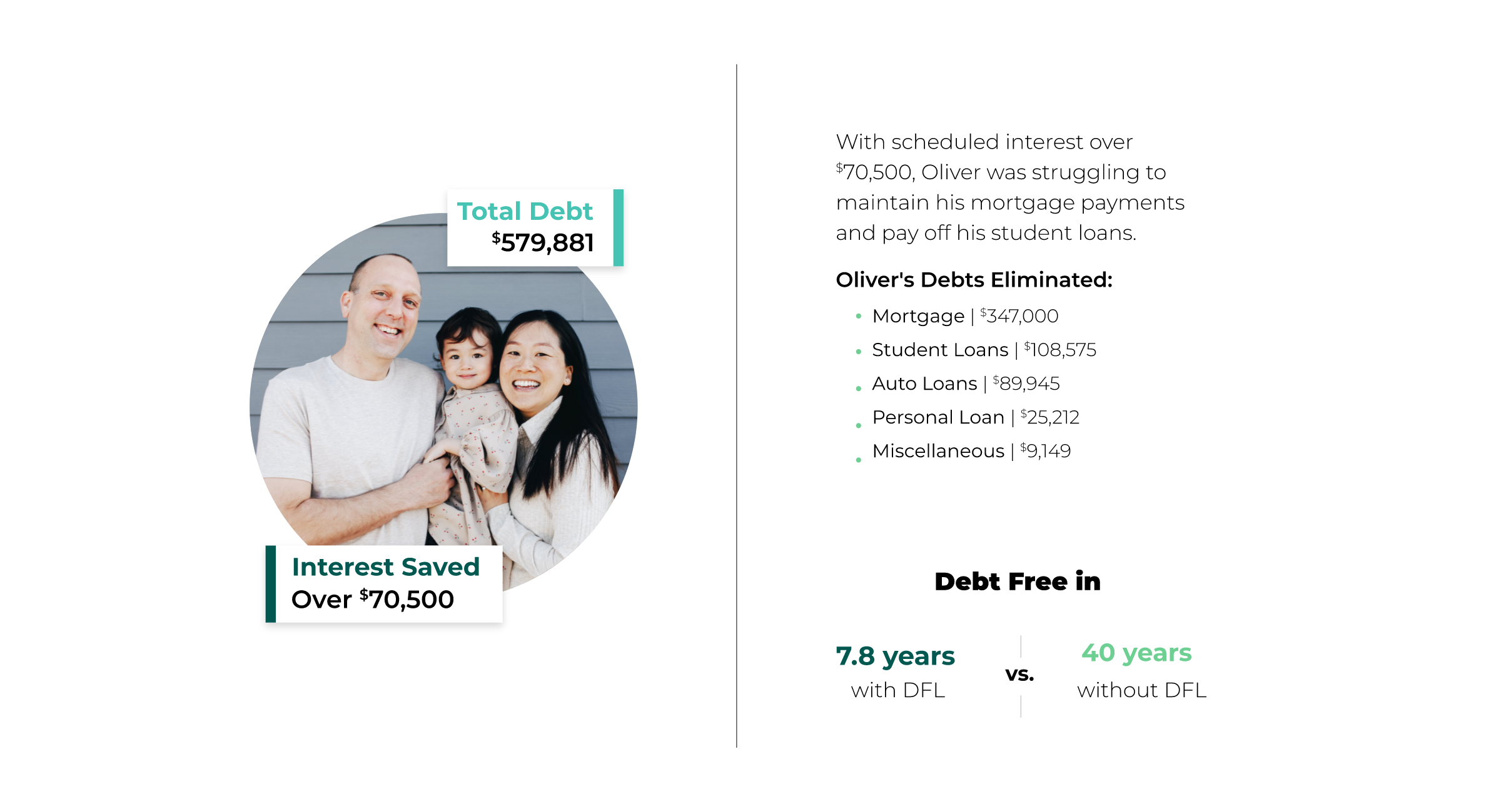 Debt Free Life ® is a modern way to pay off your debt using the cash value of a specialized participating whole life insurance policy. Using our exclusive software, your certified Debt Free Life ® consultant will generate a personalized debt elimination report showing you how and when to pay off each debt and the projected amount of interest you’ll save, all without spending any additional money each month.